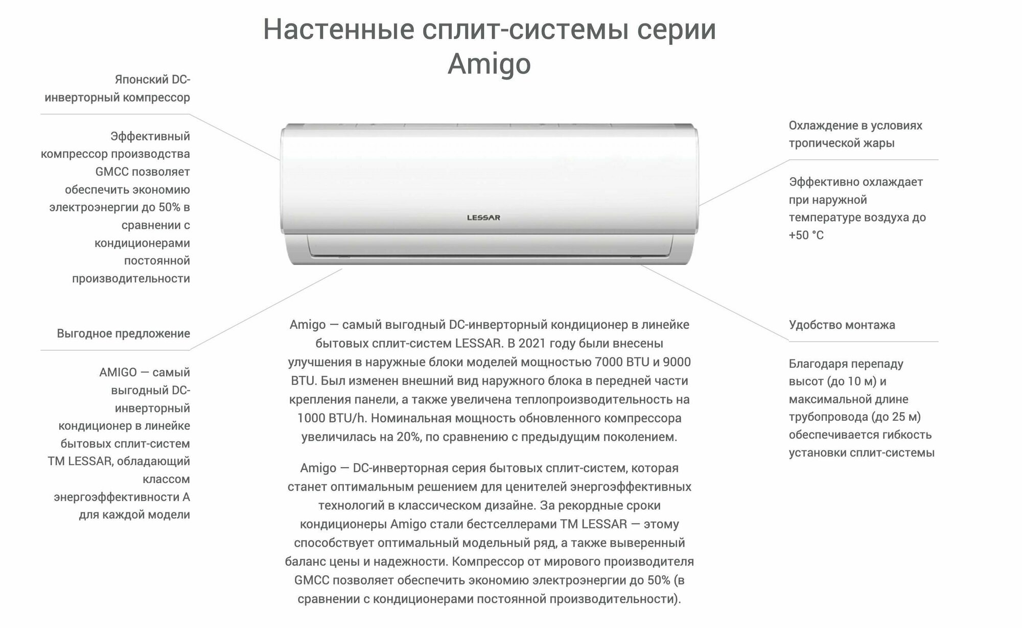 Сплит-система настенная Lessar LS-HE07KRA2A/LU-HE07KRA2A Amigo inverter