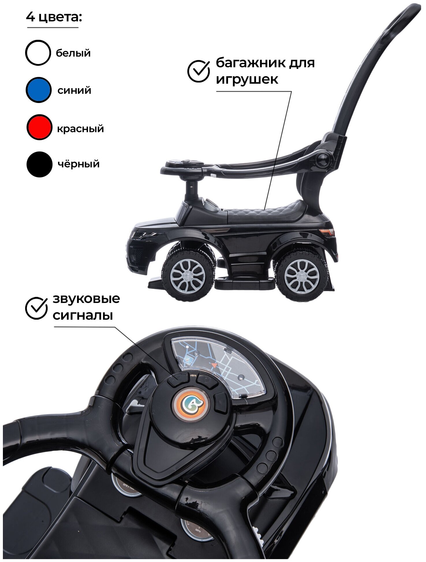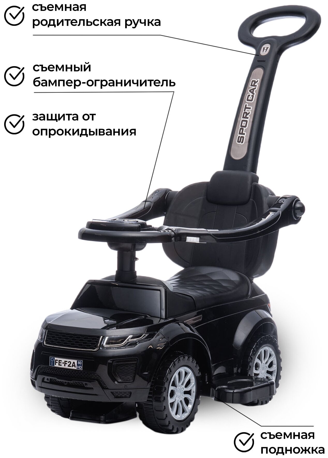 Каталка детская с ручкой Sport Car 3в1, черный интересное: