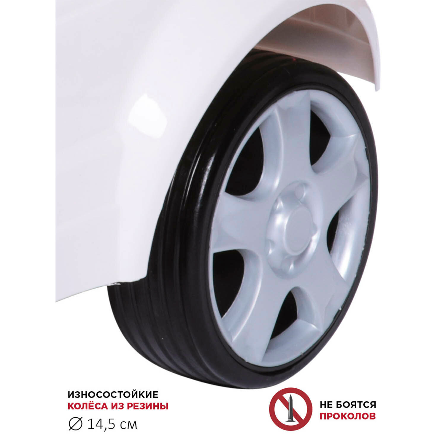 | Плюсы: | Резиновые колеса и поворотный руль. |