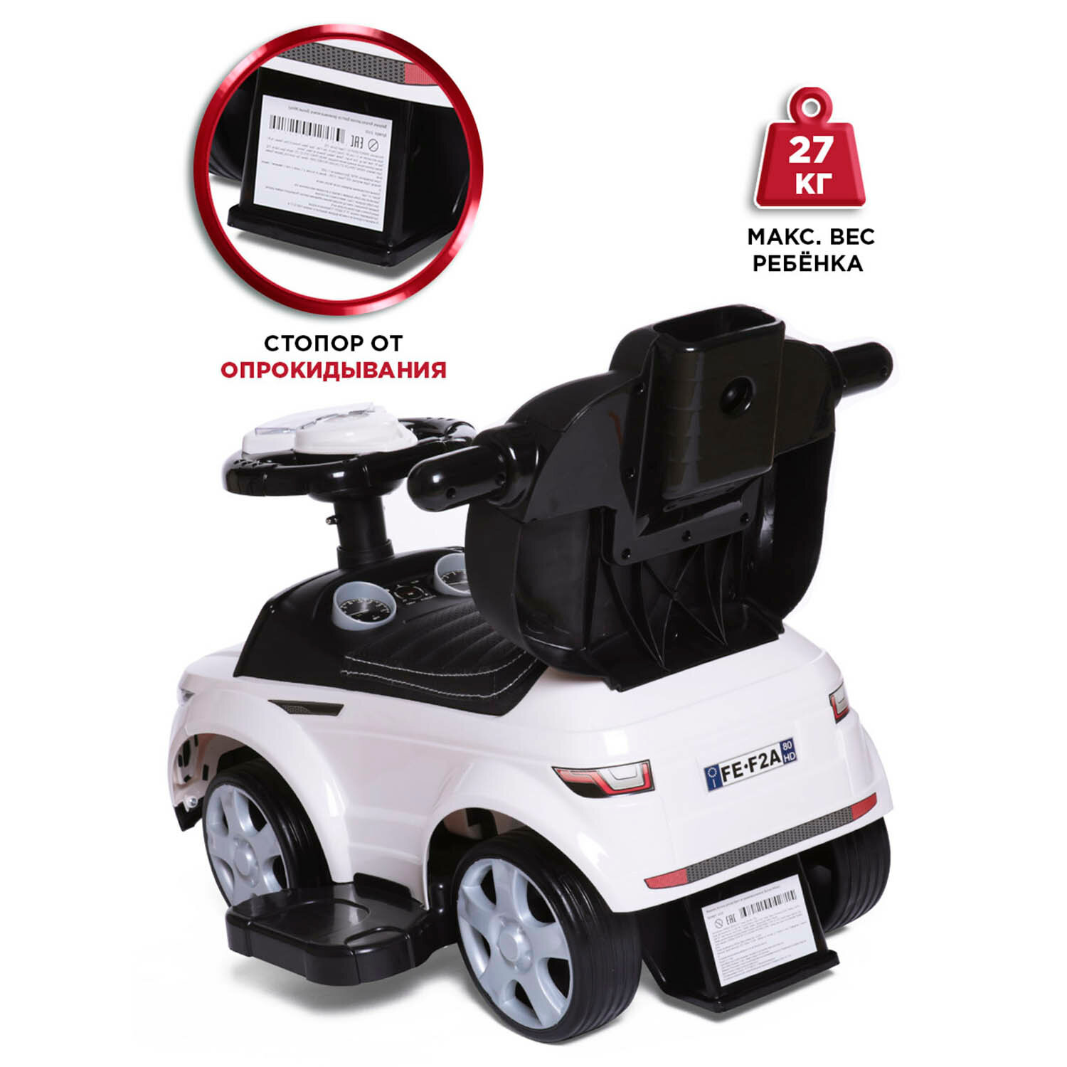 | Минусы: | Машинка низкая, для высокого ребёнка не подойдёт, рассчитываете по высоте. У нас крупный ребёнок 1,7 лет, ему было не очень удобно ногам |