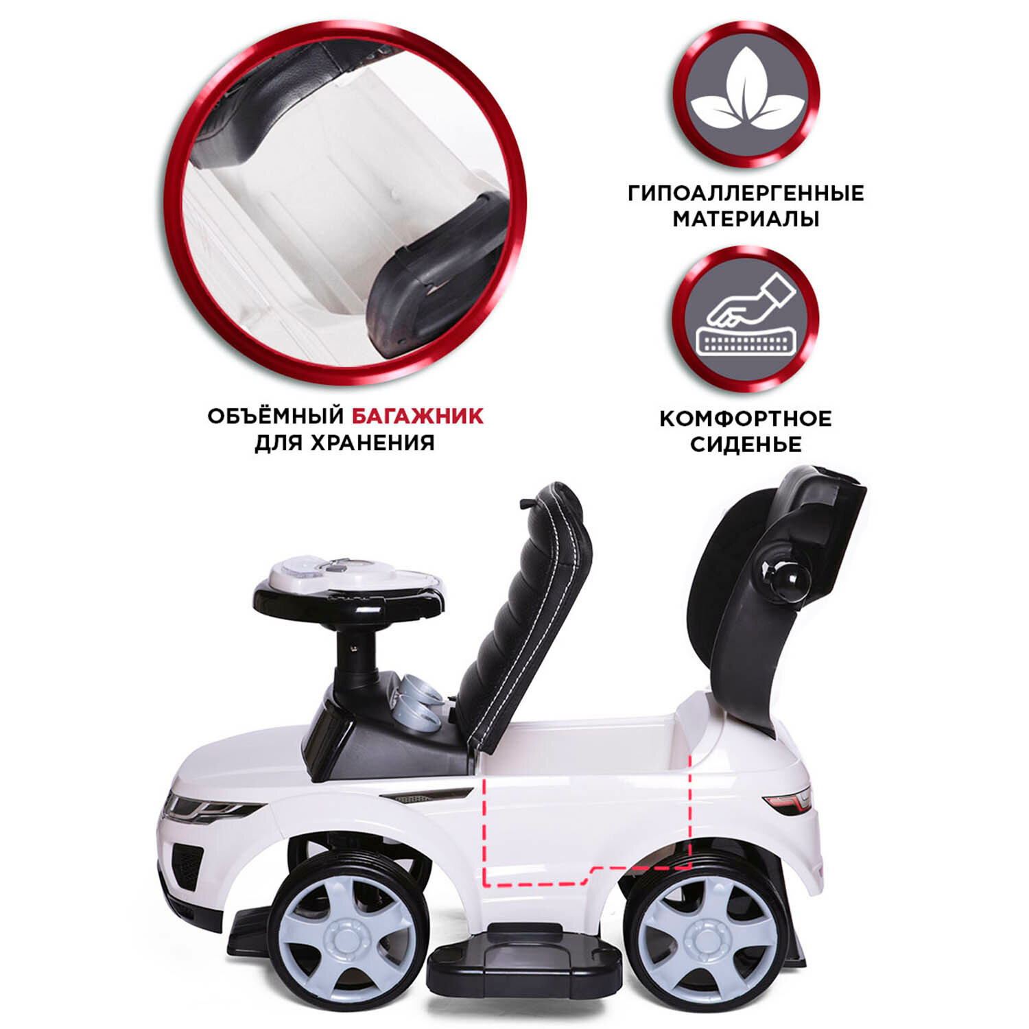 СохранитьКаталка детская Sport car BabyCare (резиновые колеса, кожаное сиденье), белый 614 интересное: