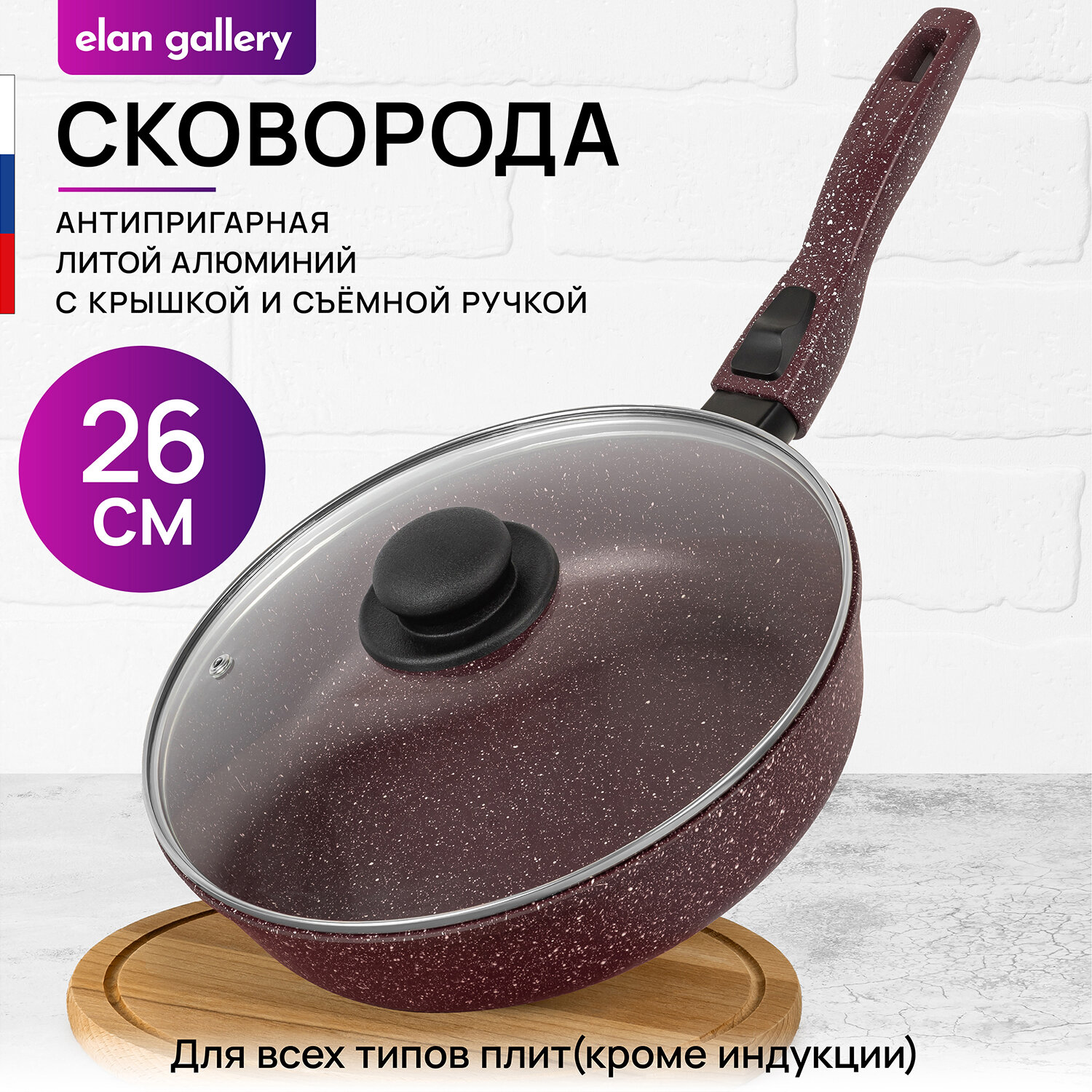 Сковорода глубокая 26 см Elan Gallery гармония вкуса Рубин с крышкой D26, со съёмной ручкой интересное: