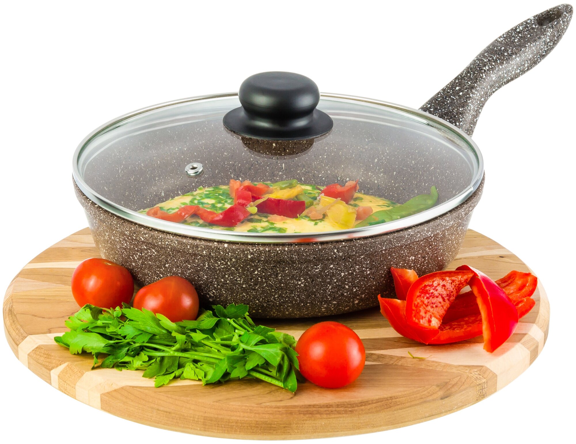 Сковорода глубокая Elan Gallery Гармония вкуса "Коричневый опал" с крышкой, несъёмная ручка, 22 см