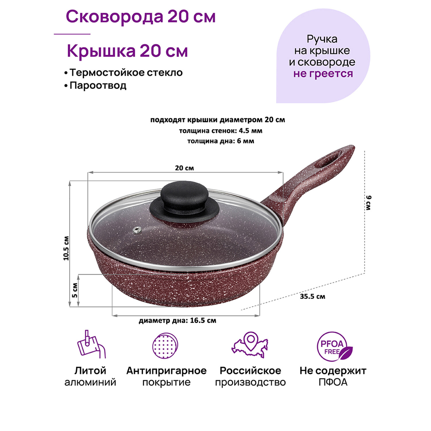 | Комплектация | сковорода, стеклянная крышка |