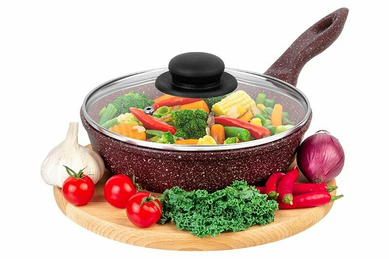 Сковорода глубокая 20 см Elan Gallery гармония вкуса Рубин с крышкой D20, с несъёмной ручкой интересное: