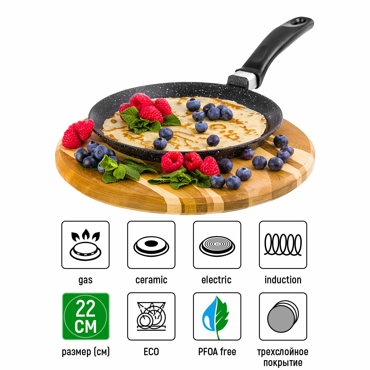 Сковорода блинная 22 см гармония вкуса "Черный мрамор" индукция, н/р, 43*23*6,5 см интересное: