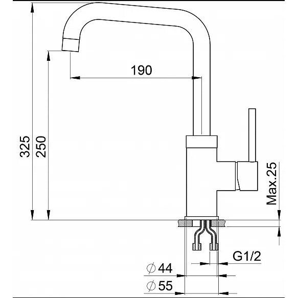 | Высота излива | 250 мм |