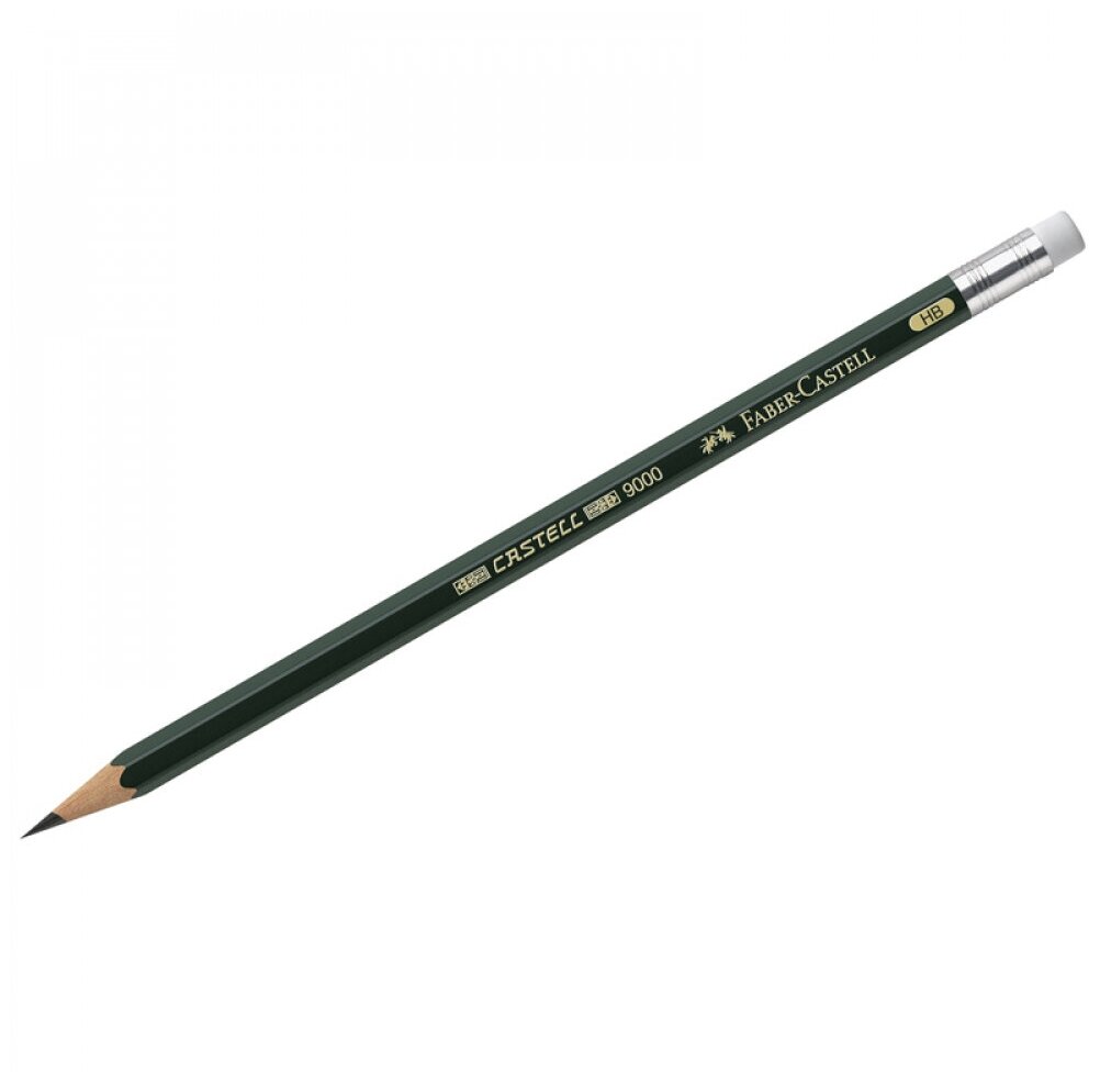 Купить Карандаш ч/г Faber-Castell "Castell 9000" HB, с ластиком, заточен., 12 шт. в упаковке