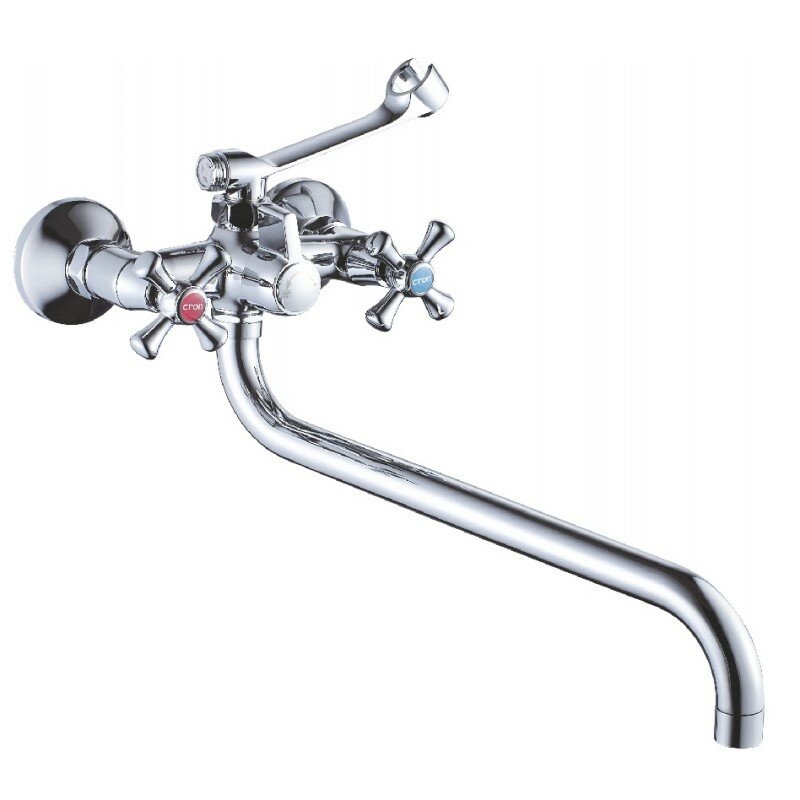 Смеситель для ванны и умывальника 1/2 кер CN2642-2 CRON труб. излив 350 мм, с душ. аксессуарами хром
