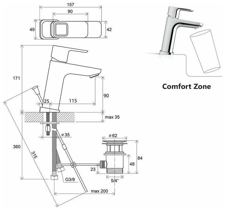 | Дополнительная информация | диаметр картриджа 35 мм; соединительные шланги: гибкий 400 мм, диаметр G3/8; открывание стока: с тросиком и сточным комплектом; гарантия на смесители: 5 лет |