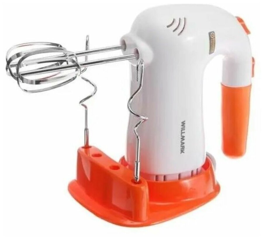 Миксер WILLMARK WHM-6023ST, ручной, 400 Вт, 5 скоростей, 2 насадки, подставка, оранжевый Willmark 64 .
