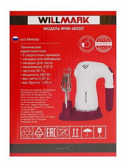 Миксер Willmark Whm-6023st (400Вт, 5 скоростей, 2 вид насадок, оранжевый) Whm-6023st orange .