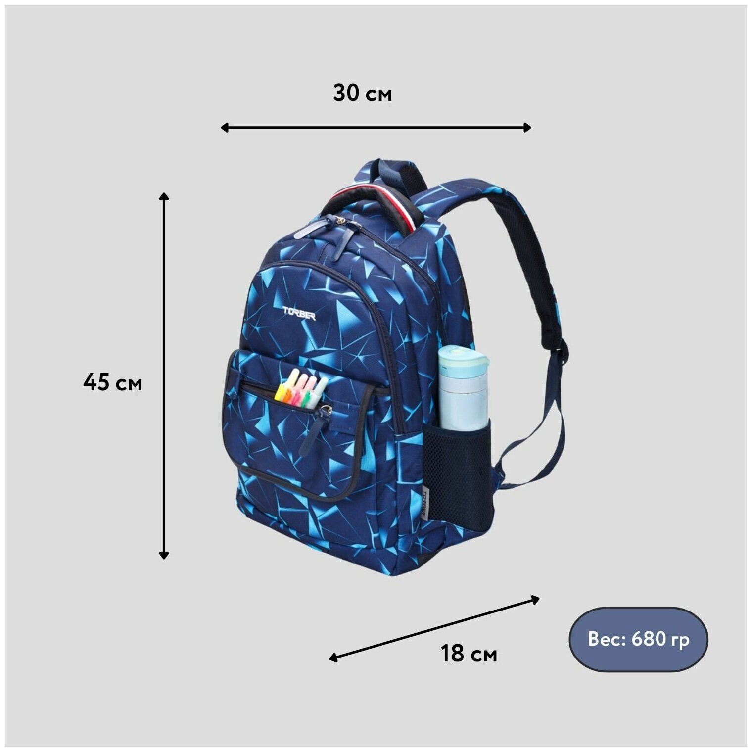 Ниже Вы можете прочитать отзывы на Школьный рюкзак TORBER CLASS X T2743-NAV-BLU темно-синий с орнаментом, полиэстер, 45 x 30 x 18 см, 17 л, ознакомится с подробными характеристиками, посмотреть интересные обзоры и фотографии на Школьный рюкзак TORBER CLASS X T2743-NAV-BLU темно-синий с орнаментом, полиэстер, 45 x 30 x 18 см, 17 л.