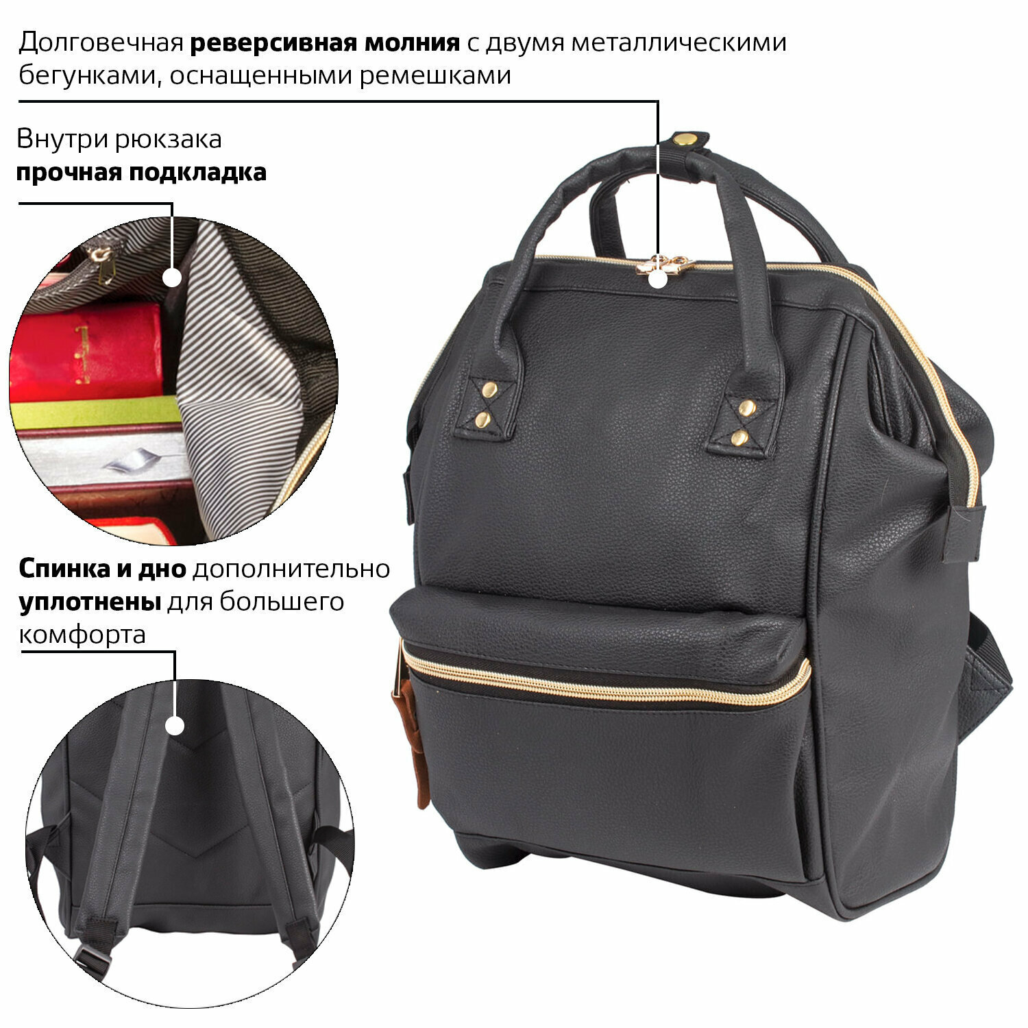 Рюкзак BRAUBERG CELEBRITY универсальный, экокожа, длинные ручки, черный, 34х23х15 см, 227081