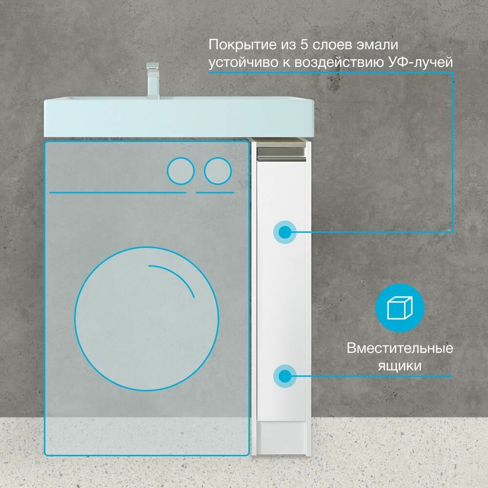 Тумба под раковину AQUATON Лондри 20 1A236101LH010 180x496x882 мм, для стиральной машины, 1 ящик