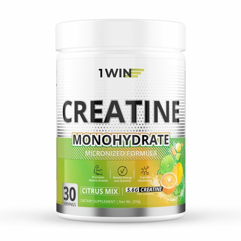 Креатин 1WIN моногидрат, Цитрусовый микс, Банка 200 гр. 30 порций. пд