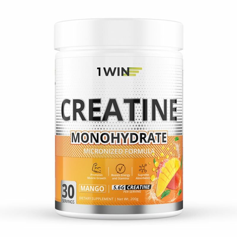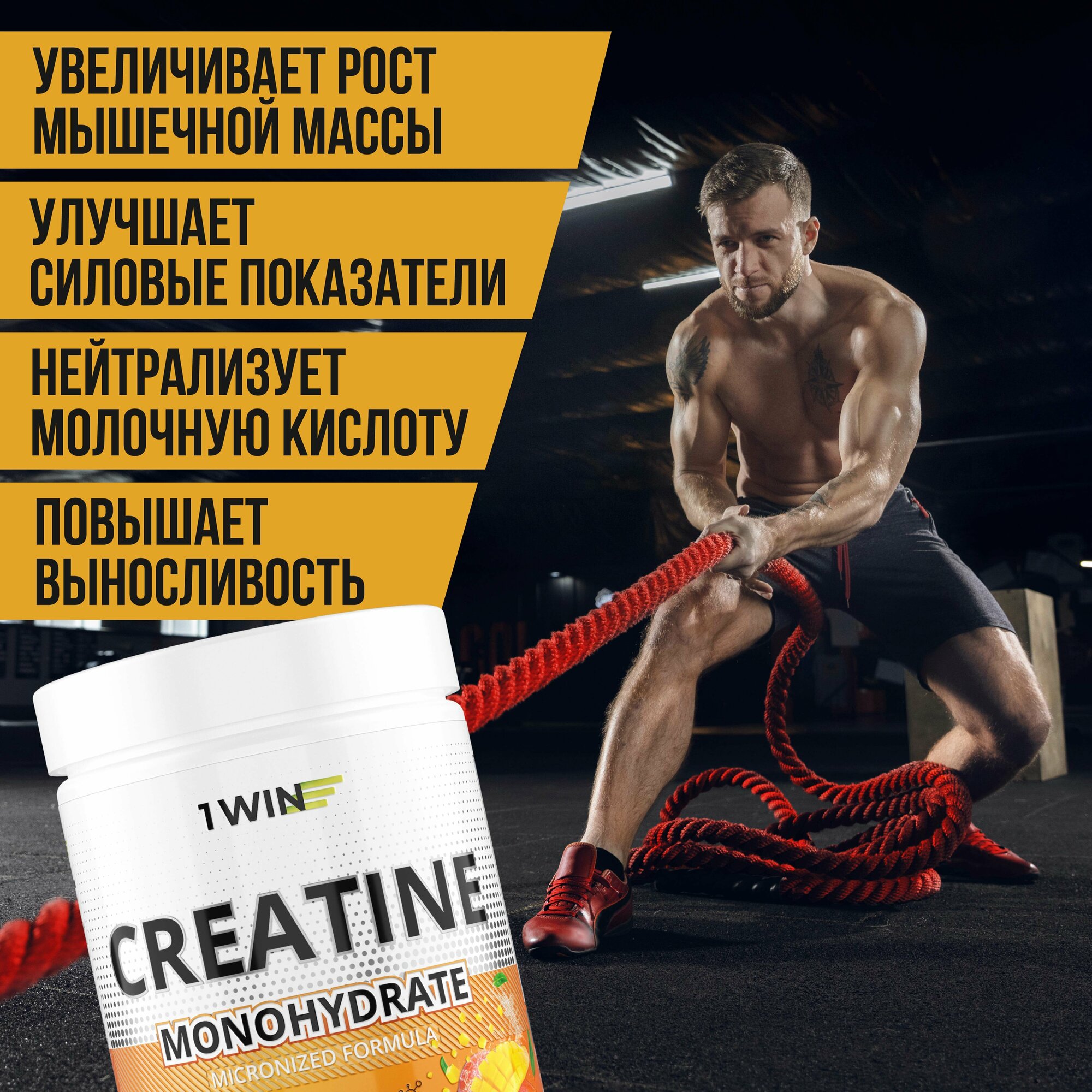 Креатин моногидрат порошок 1WIN, Creatine Monohydrate, Вкус Манго, 60 порций, спортивное питание для набора массы тела