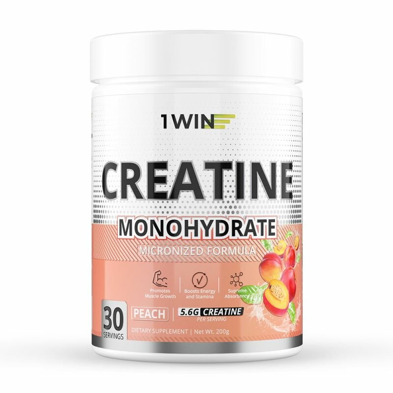 Креатин моногидрат порошок 1WIN, Creatine Monohydrate, Вкус Персик, 30 порций, спортивное питание для набора массы тела