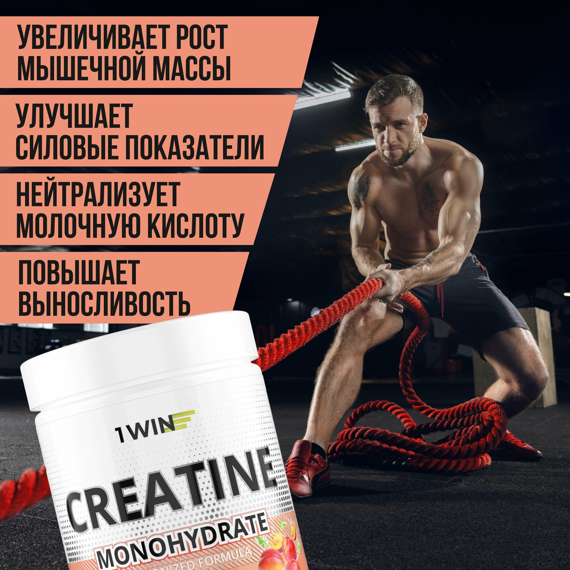 Креатин моногидрат порошок 1WIN, Creatine Monohydrate, Вкус Тропик, 60 порций, спортивное питание для набора массы тела
