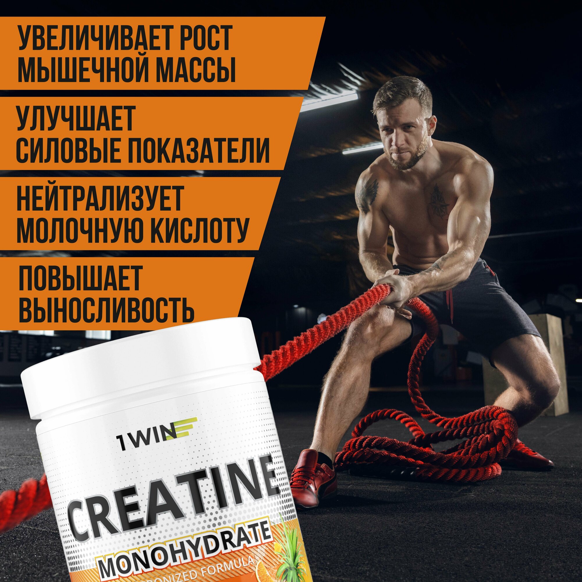Креатин моногидрат порошок 1WIN, Creatine Monohydrate, Вкус Тропик, 60 порций, спортивное питание для набора массы тела