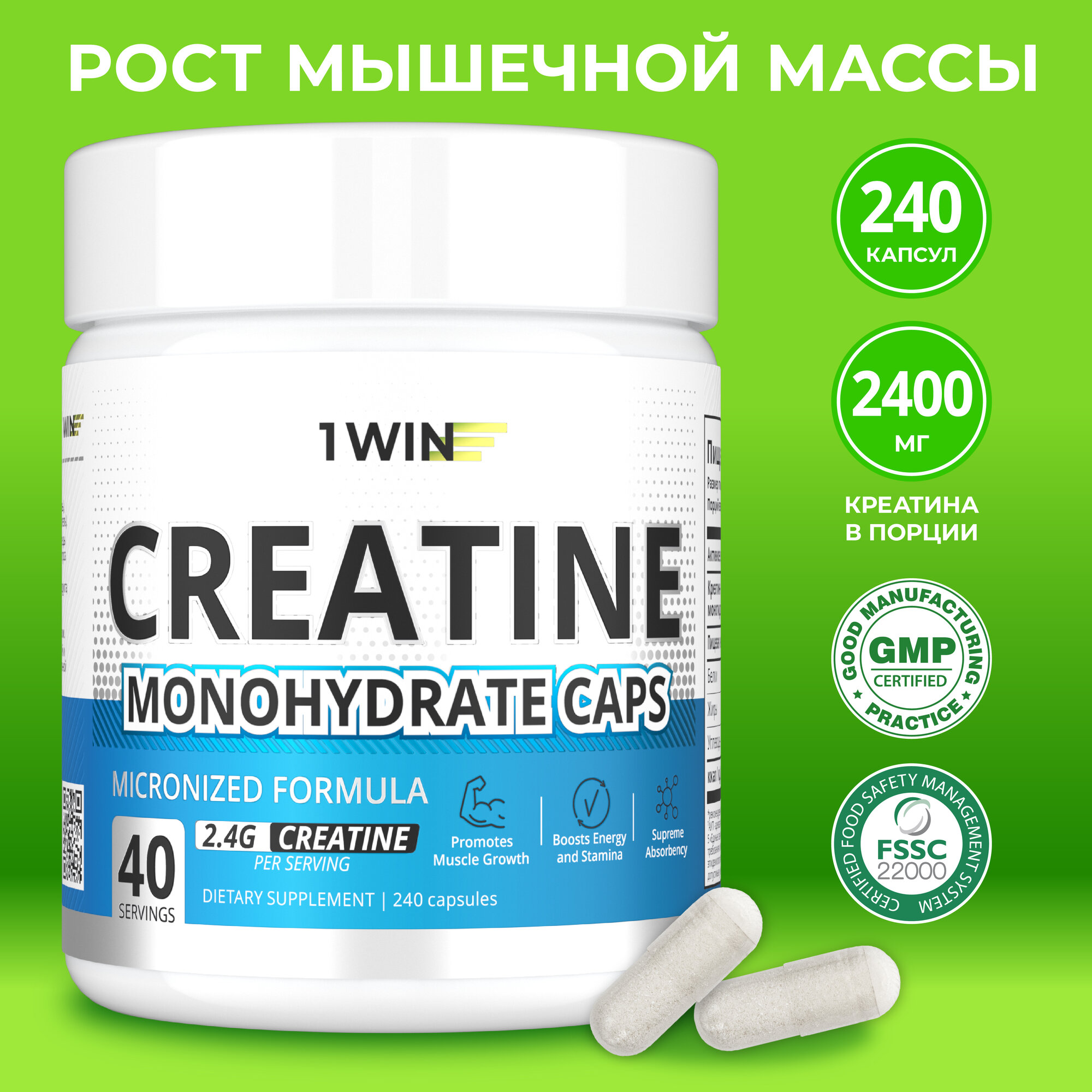 Креатин моногидрат 1WIN в капсулах Creatine Monohydrate, 240 капсул, спортивное питание для набора массы тела интересное: