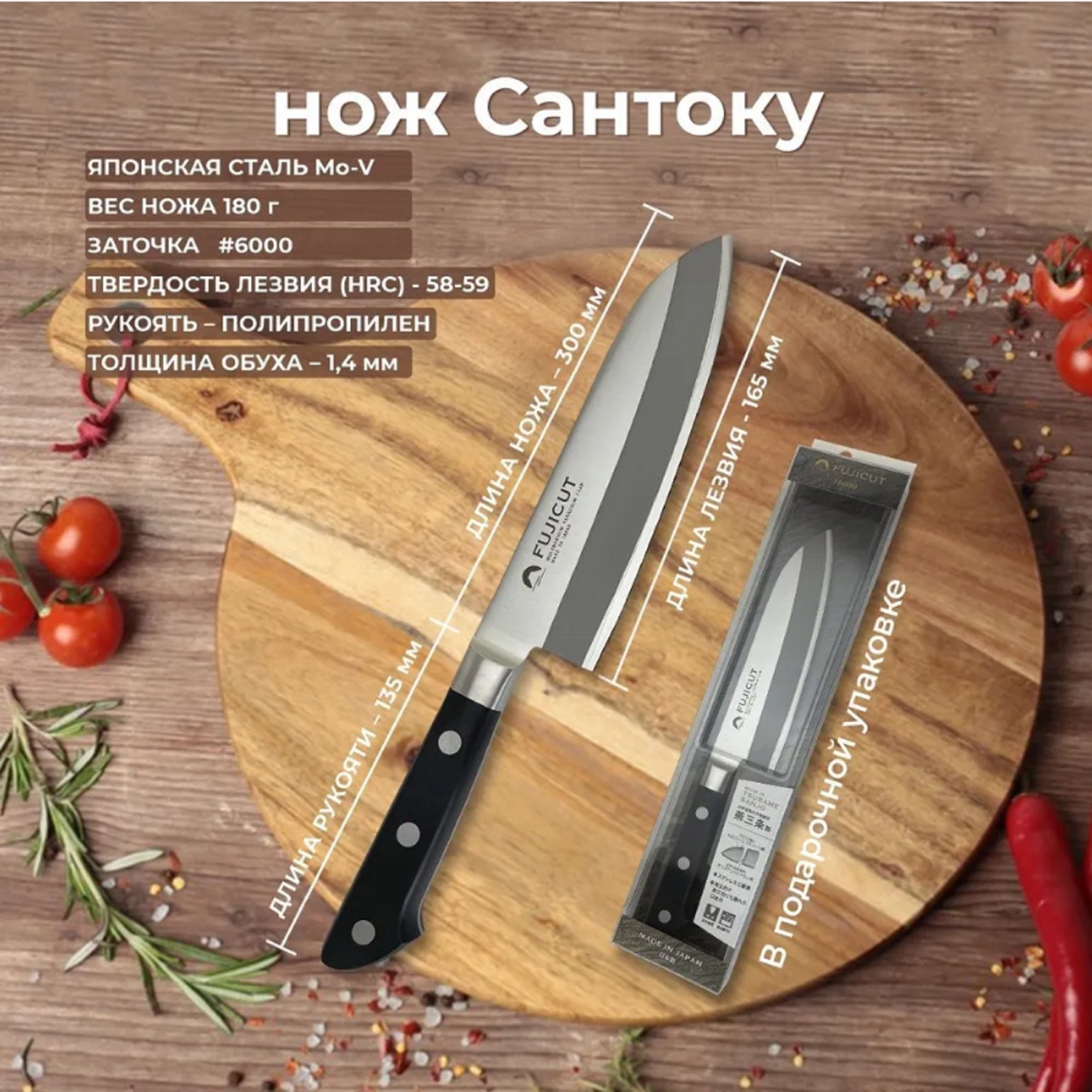 Японский Шеф Нож Сантоку Fuji Cutlery FC-1661