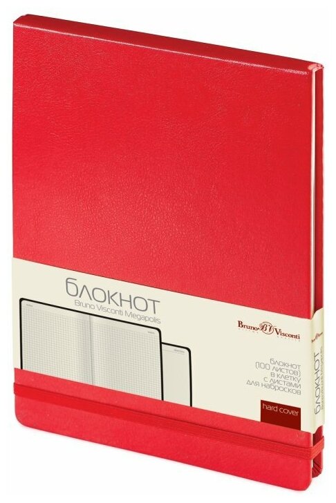 Бизнес-блокнот А5 Bruno Visconti, 100 листов, клетка, твердая обложка, балакрон, открытие вверх, красный (3-103/04)
