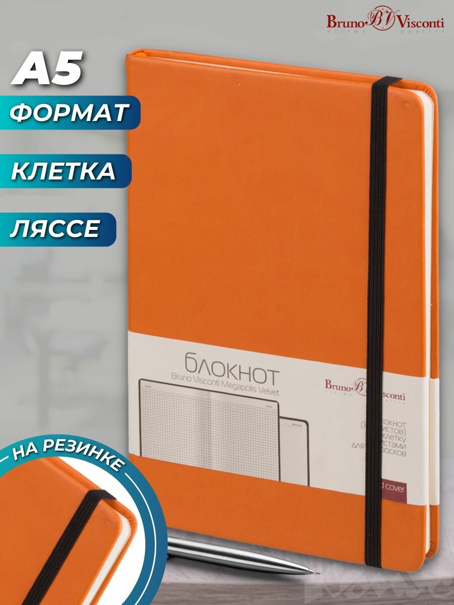 Bruno Visconti Блокнот Megapolis Velvet A5 100 л. оранжевый клет ,144х212 мм, 3-525/07, 998268