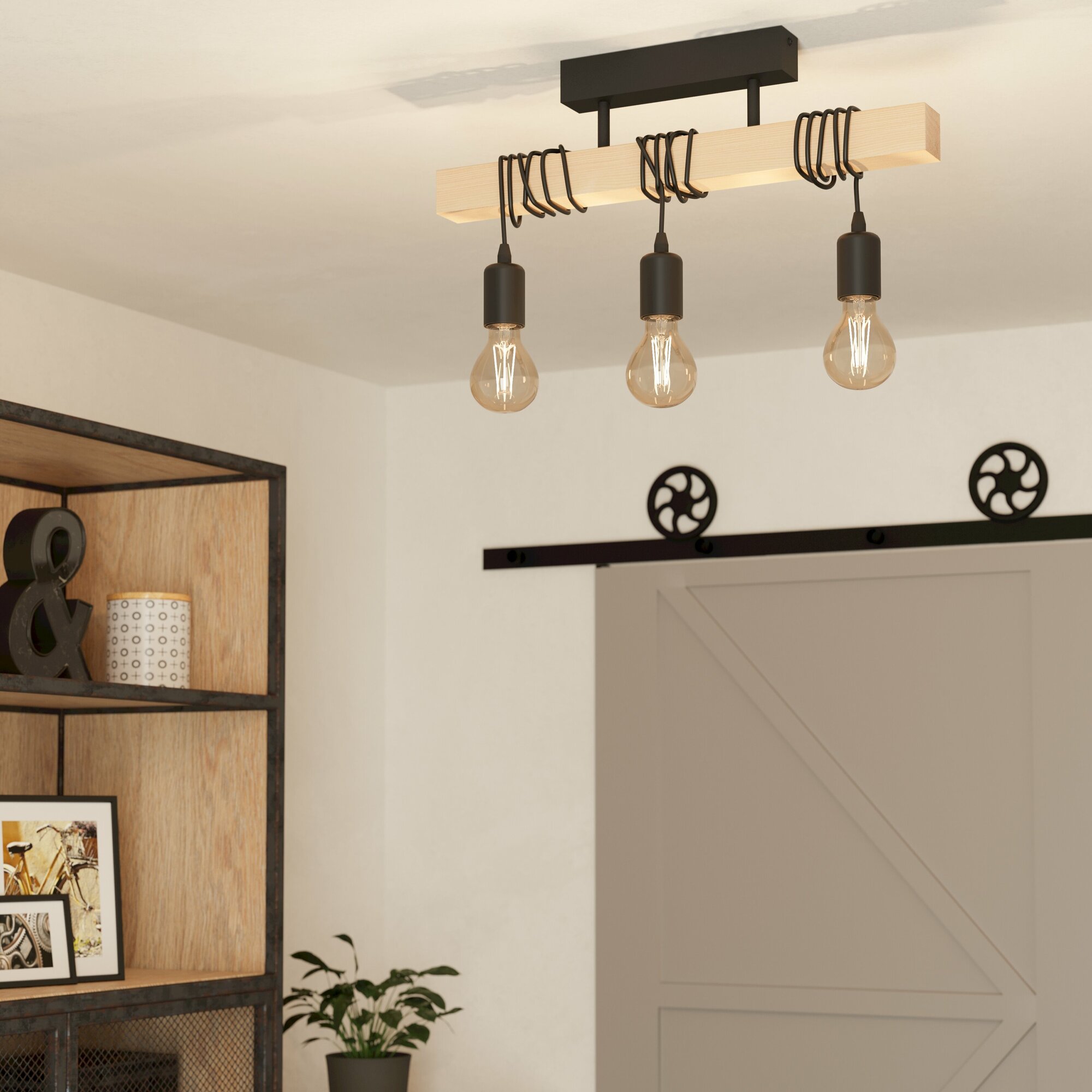 32915 Потолочный светильник TOWNSHEND, 3х60W (E27), L550, B105, H265, сталь, дерево, черный, коричне