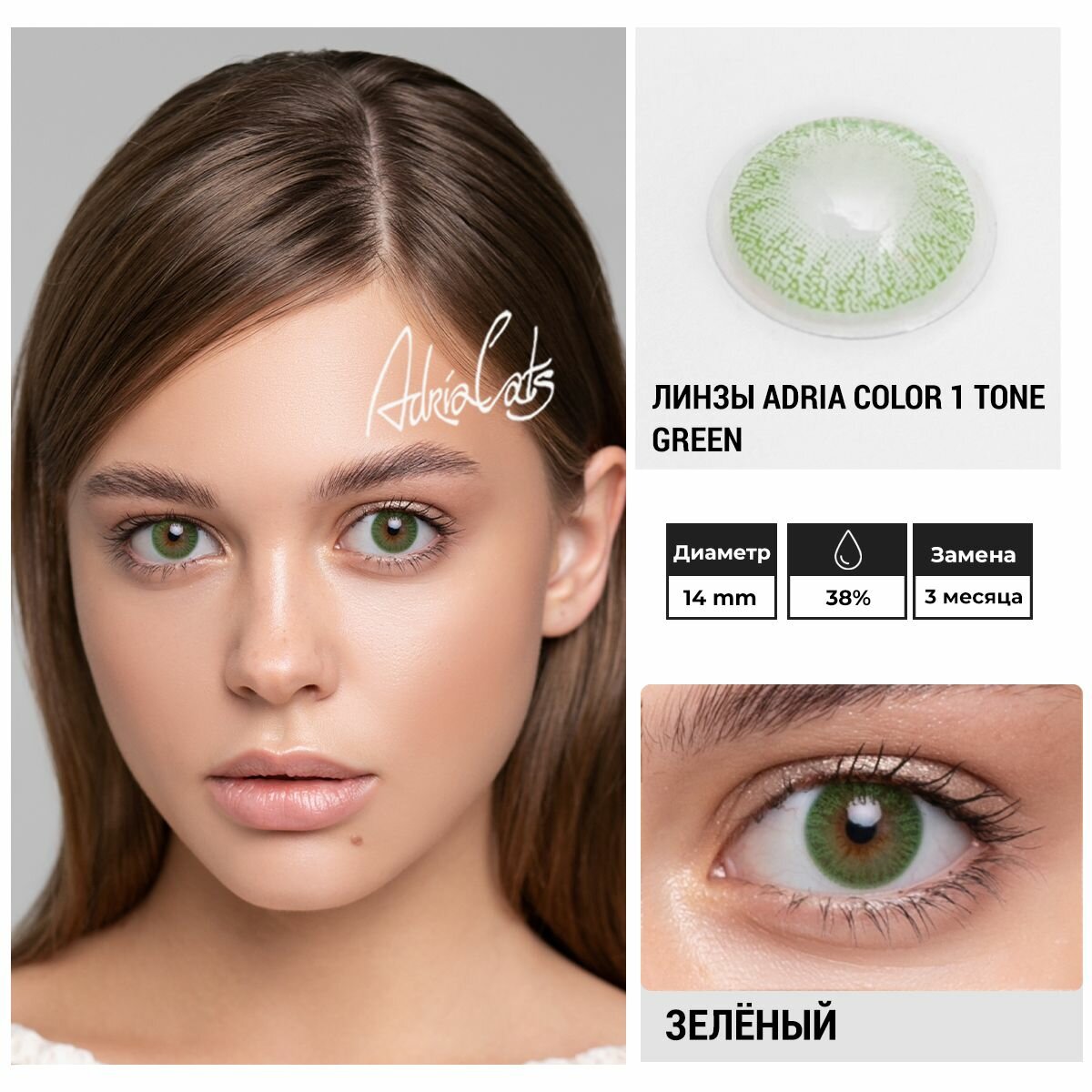 Контактные линзы цветные ADRIA, Adria Color 1T, Квартальные, GREEN, -1,00 / 14 / 8,6 / 2 шт.