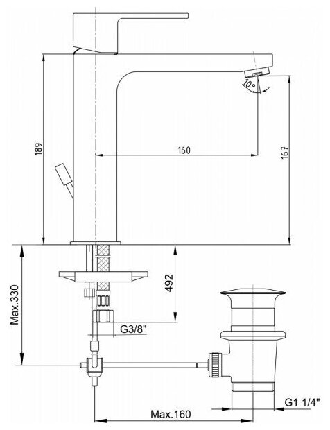 Смеситель E.C.A. Nita 102188049EX для раковины с донным клапаном