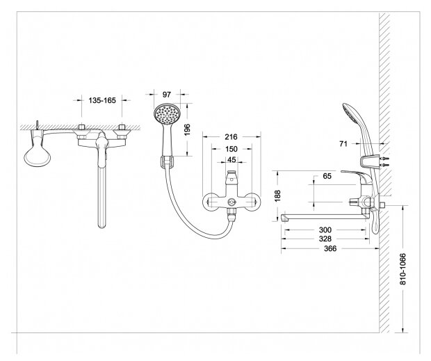 Смеситель для ванны c длинным изливом с аксессуарами Bravat Fit (F6135188CP-LB-RUS)