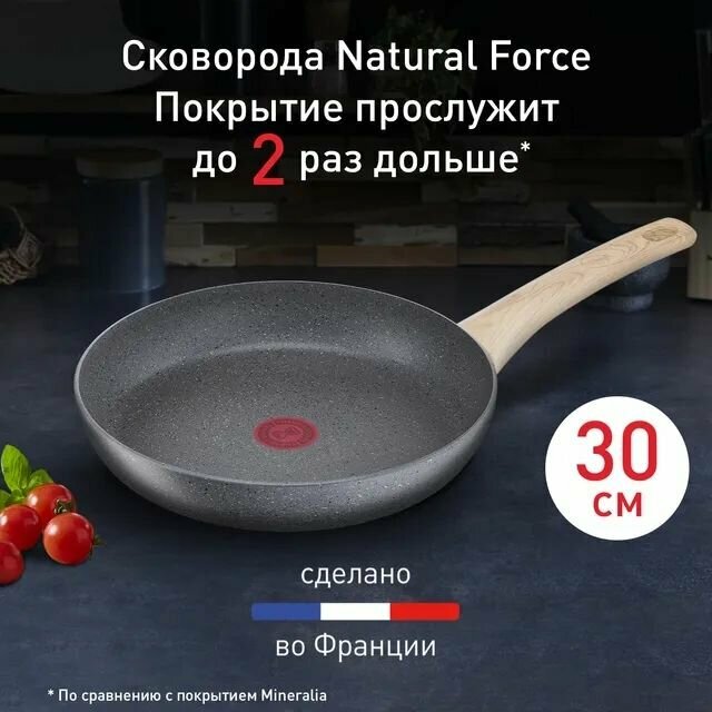 Сковорода 30 см Tefal Natural Force с антипригарным покрытием, с индикатором температуры, для всех видов плит, включая индукционные, сделано во Франции