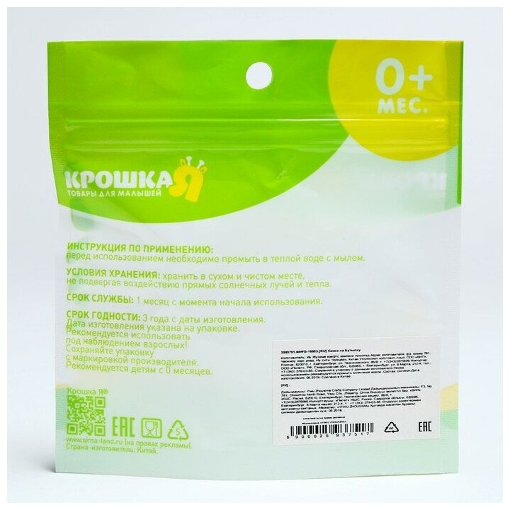 Соски Крошка Я Соска силиконовая на бутылочку анатомическая, от 6 мес., с быстрым потоком