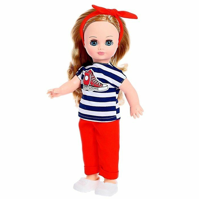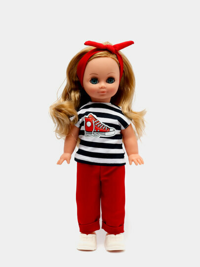 | Комплектация | Кукла в одежде (футболка в полоску с наклейкой "кеда" и брючки), ободок-бант в тон брюк, туфельки |