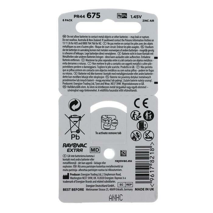 Элемент питания RAYOVAC EXTRA ZA675, для слуховых аппаратов (6 шт)