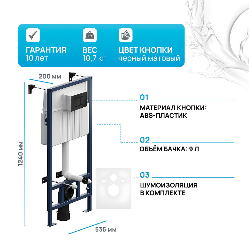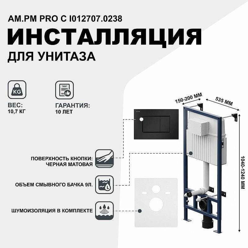 Инсталляция для подвесного унитаза AM.PM ProC I012707.0238 клавиша черный матовый, +звукоизолирующая прокладка