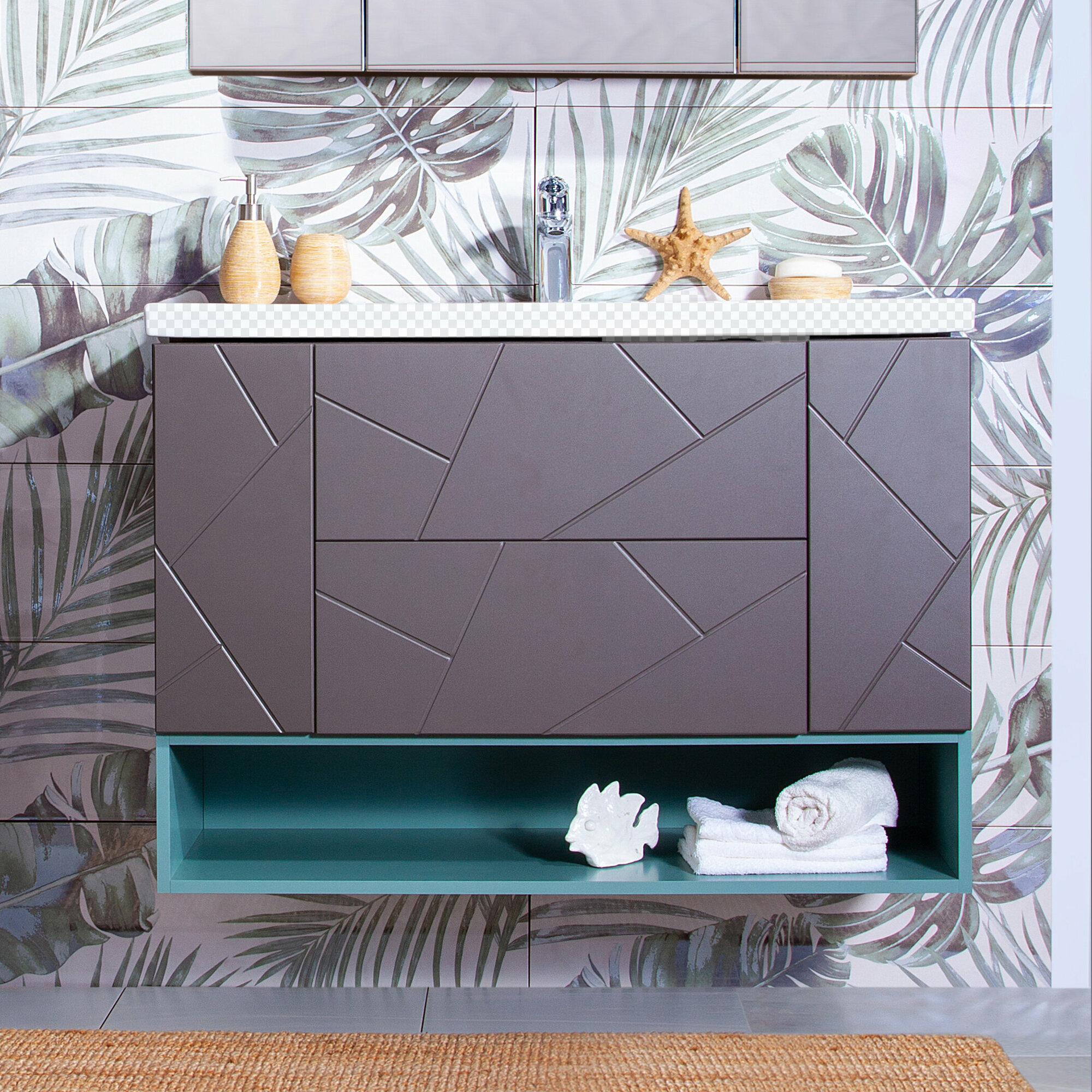 Тумба с раковиной для ванной Кристалл 100, под раковину Фостер 100.