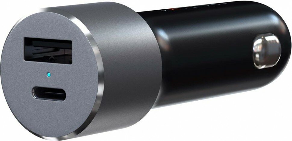Автомобильное зарядное устройство Satechi 72W Type-C PD Car Charger. Входное напряжение 12В. Порты 1 x USB-A 12W, 1 x USB-C 60W. Цвет серый космос.