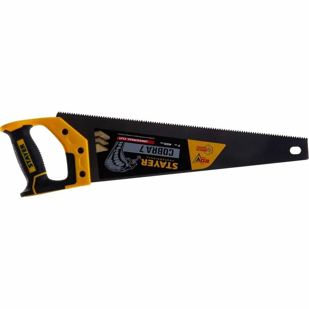 Ножовка по дереву (пила) STAYER "Cobra 7", универсальная, 400 мм, 7 TPI, универс. зуб, рез вдоль и поперек волокон, для средних заготовок, фанеры, ДСП, МДФ