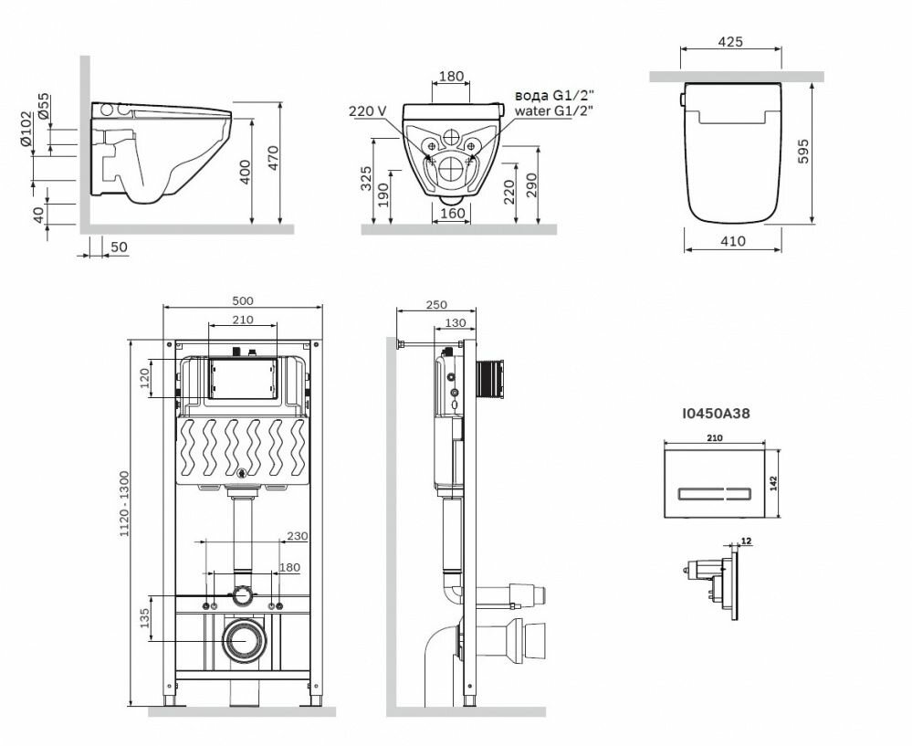 IS450A38.CCC50A Инст с клав Touchless Pro стекло, чёрн с подв унит Inspire V2.0 FlashClean с эл биде