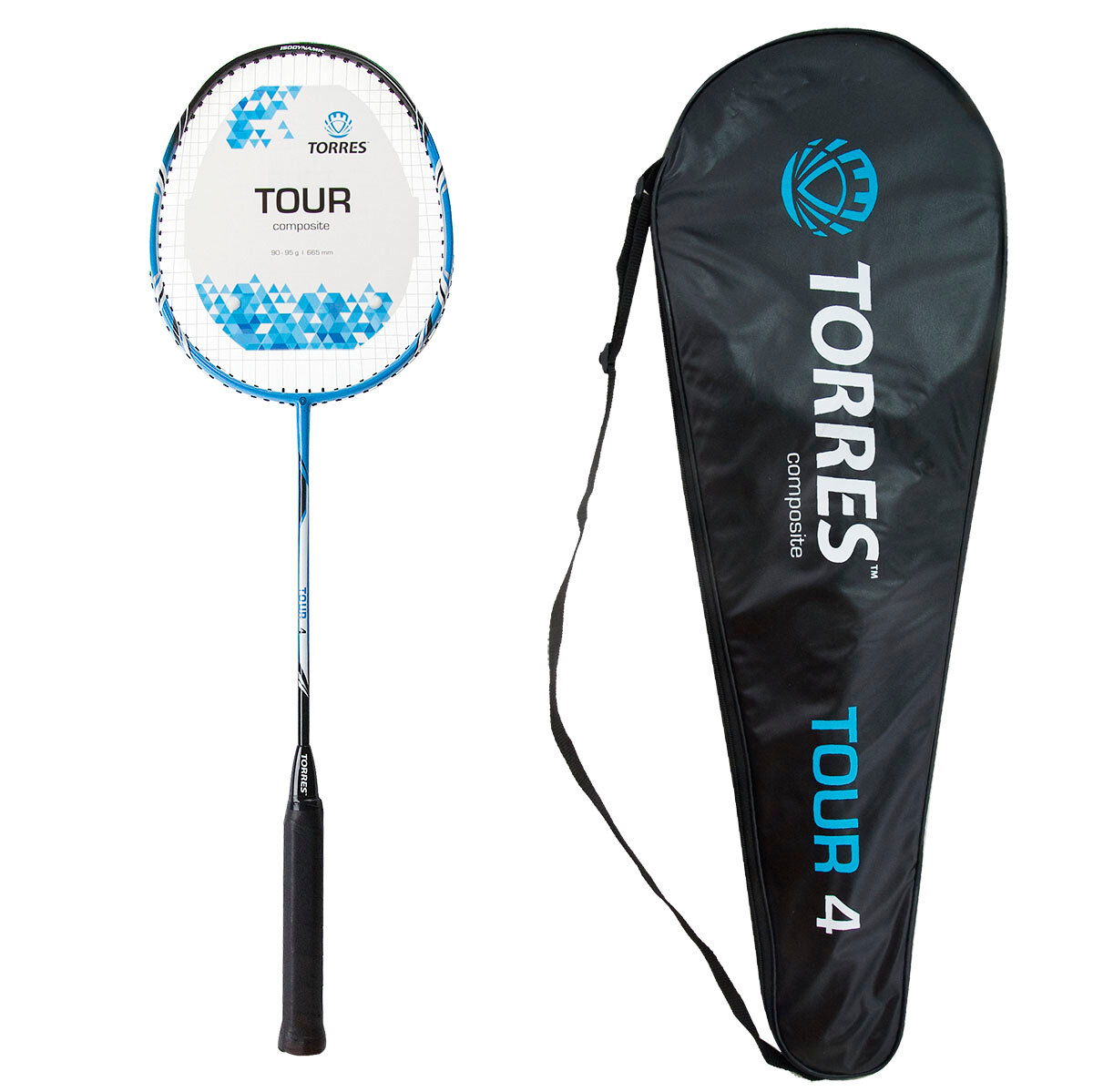 41019-66167 Ракетка для бадминтона TORRES Tour4, BD20501, для любителей, стерж из графита, алюминиевый обод, со струнами, синий