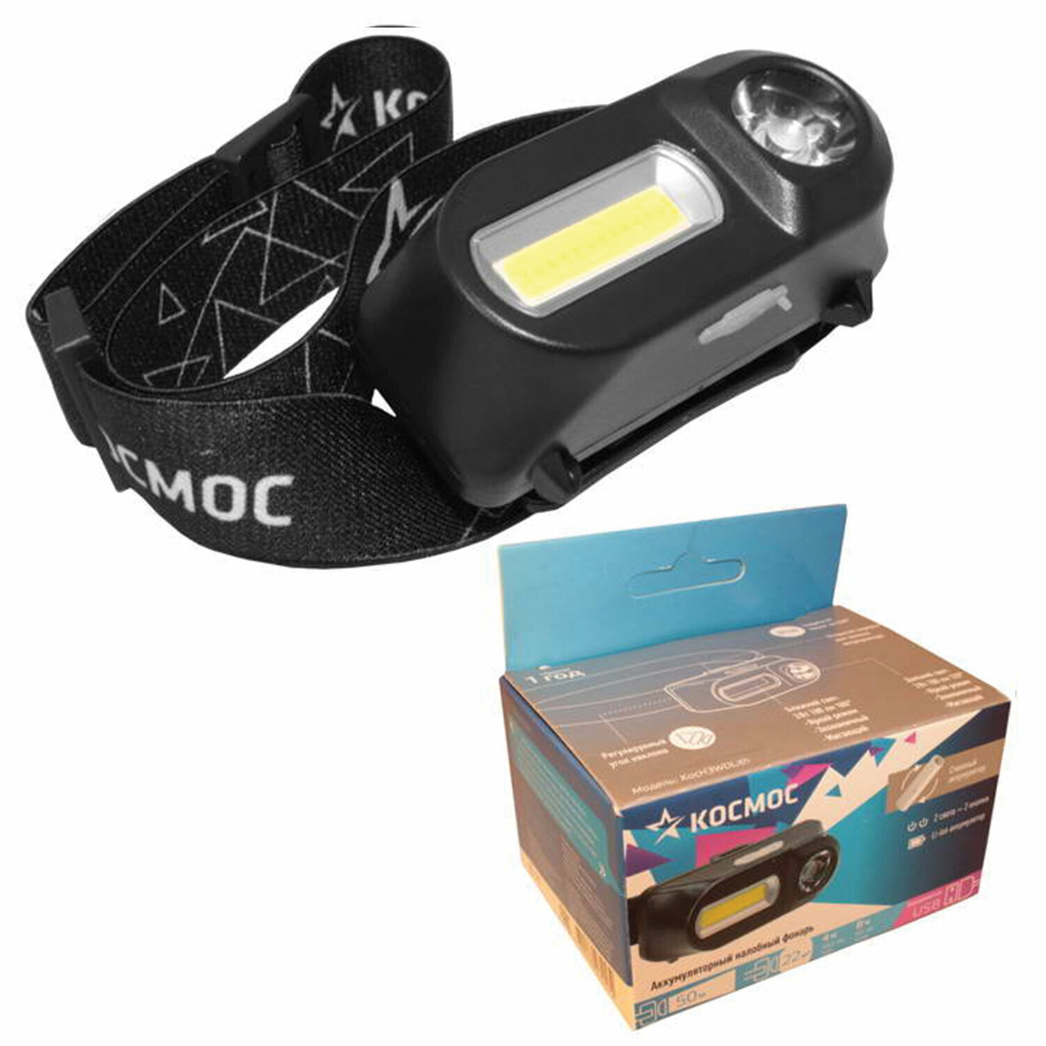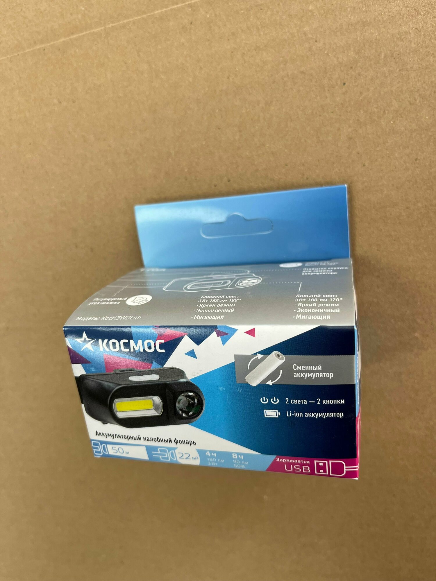 Налобный фонарь Космос - KocH3WDLith, аккумуляторный, до 50м, 180 люмен, 3 режима, 1 шт.