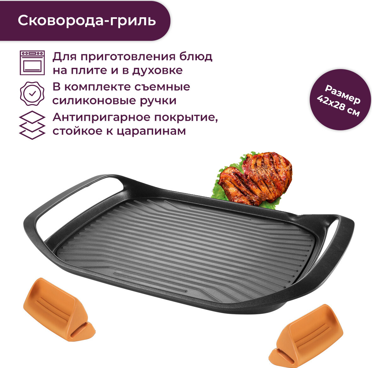Сковорода-гриль Tescoma SmartClick 42x28см, съёмные ручки 605068.00 интересное: