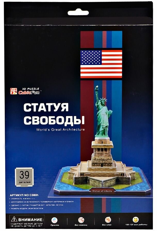 Сохранить3D пазл Статуя Свободы, 39 деталей (C080h) интересное: