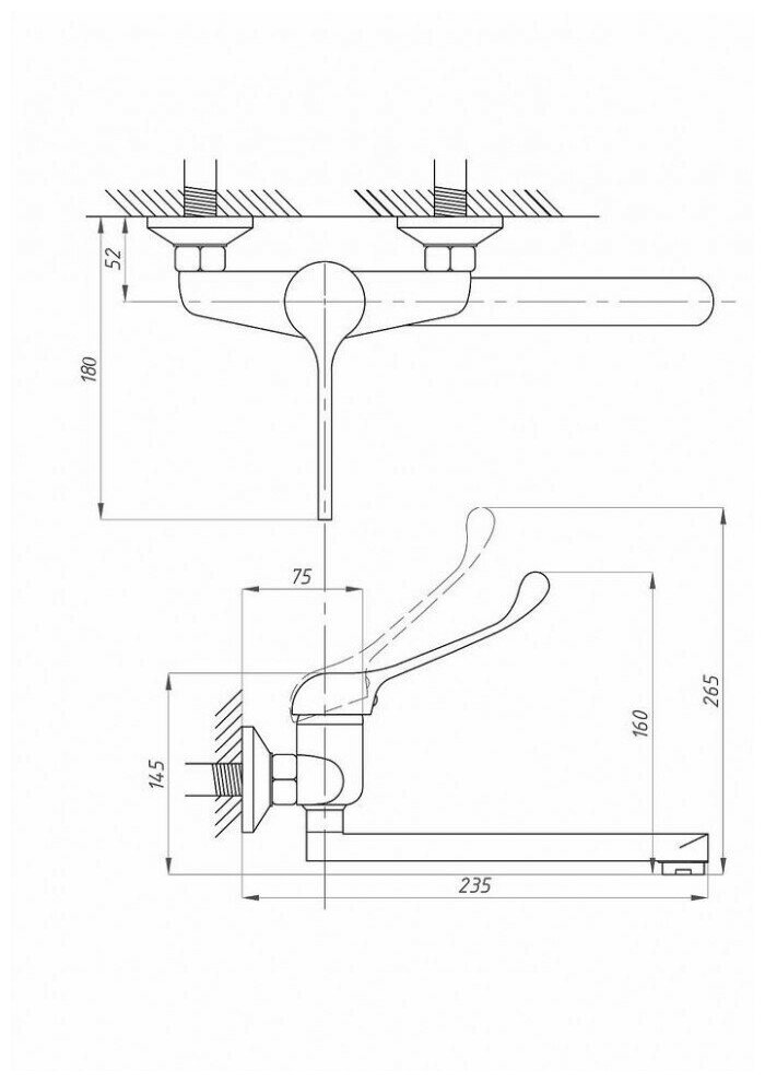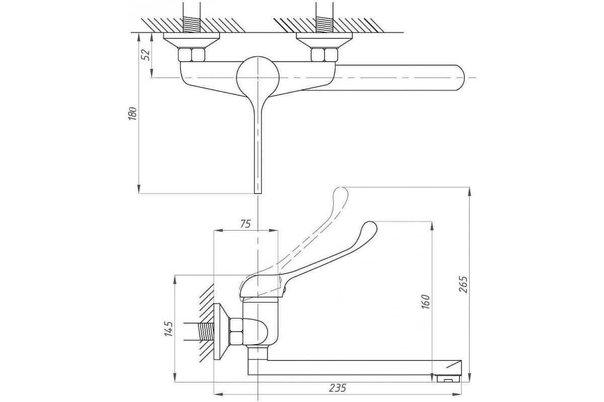 Смеситель для раковины Профсан Медик ПСМ-508-055, настенный, локтевой, однорычажный, хром