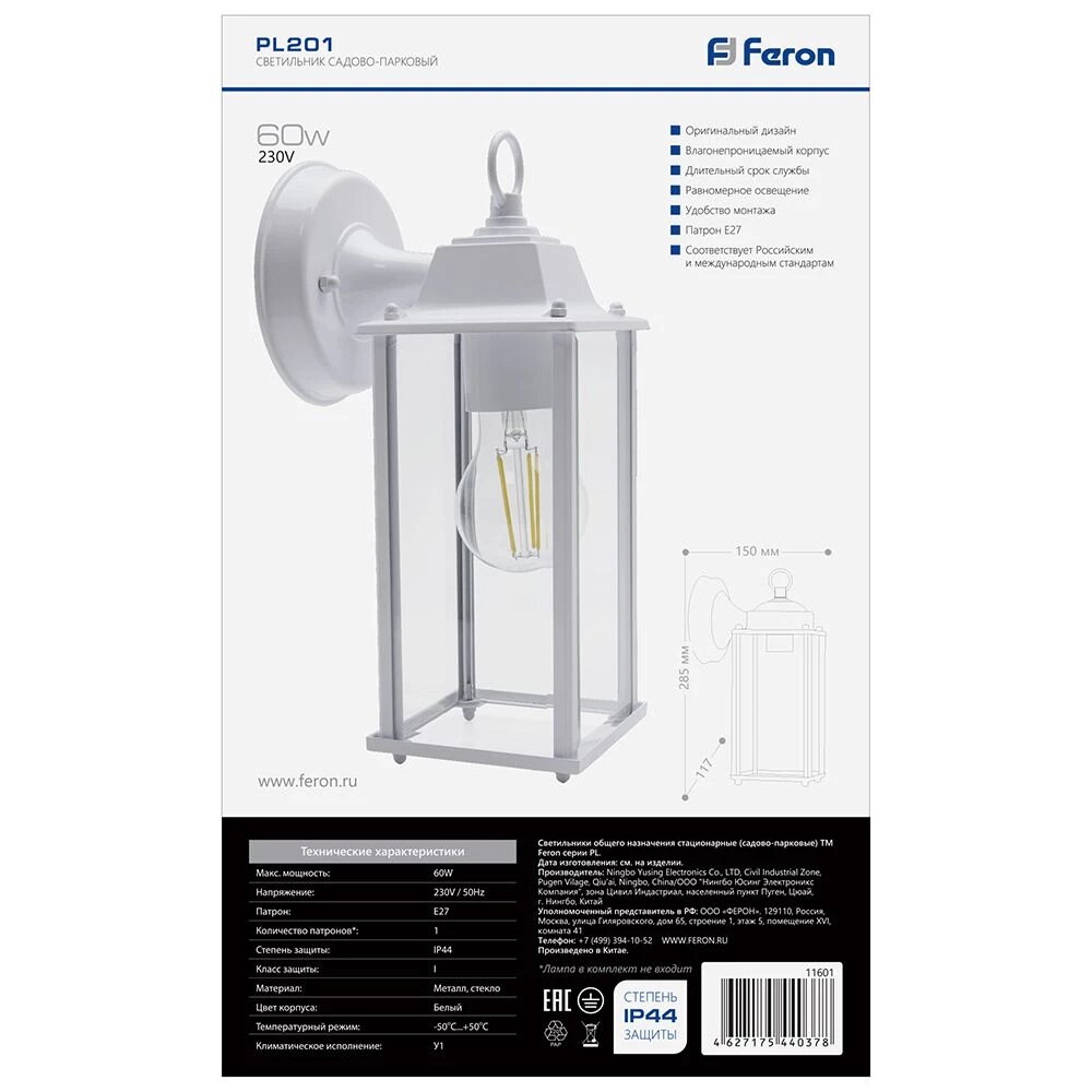 Feron Светильник садово-парковый, 60W 230V E27 белый, PL201 11601 .