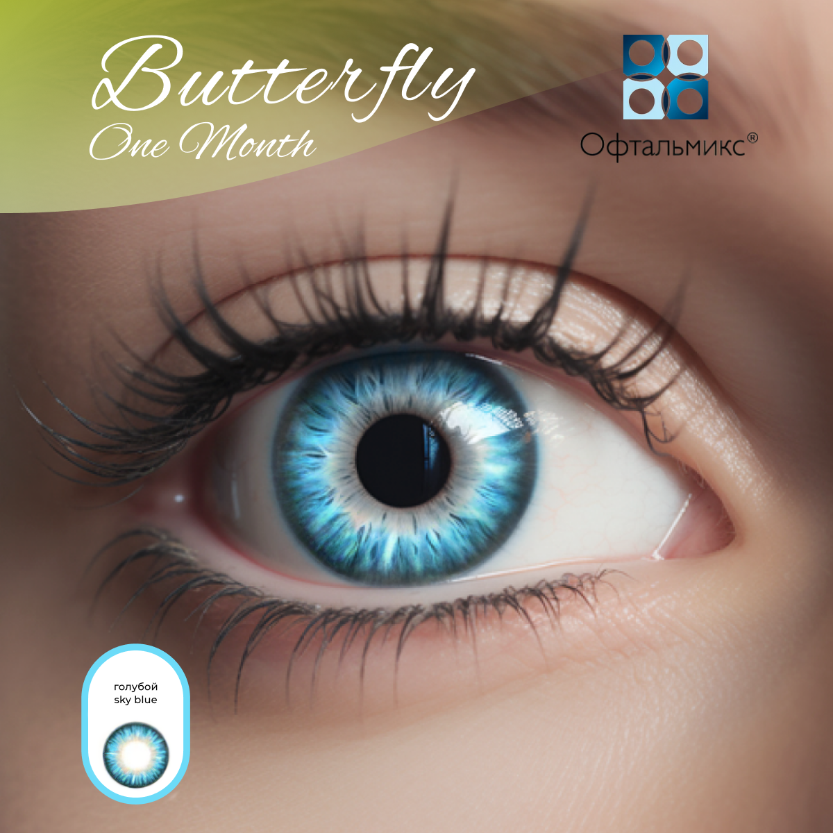 Офтальмикс Butterfly Color One Month (2 линзы) -0.00 R 8.6 Sky Blue (Голубой)