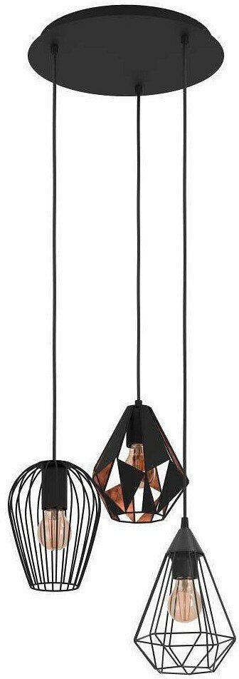 Светильник подвесной Eglo Distaff 43582, E27, 120Вт, кол-во ламп:3шт., Черный