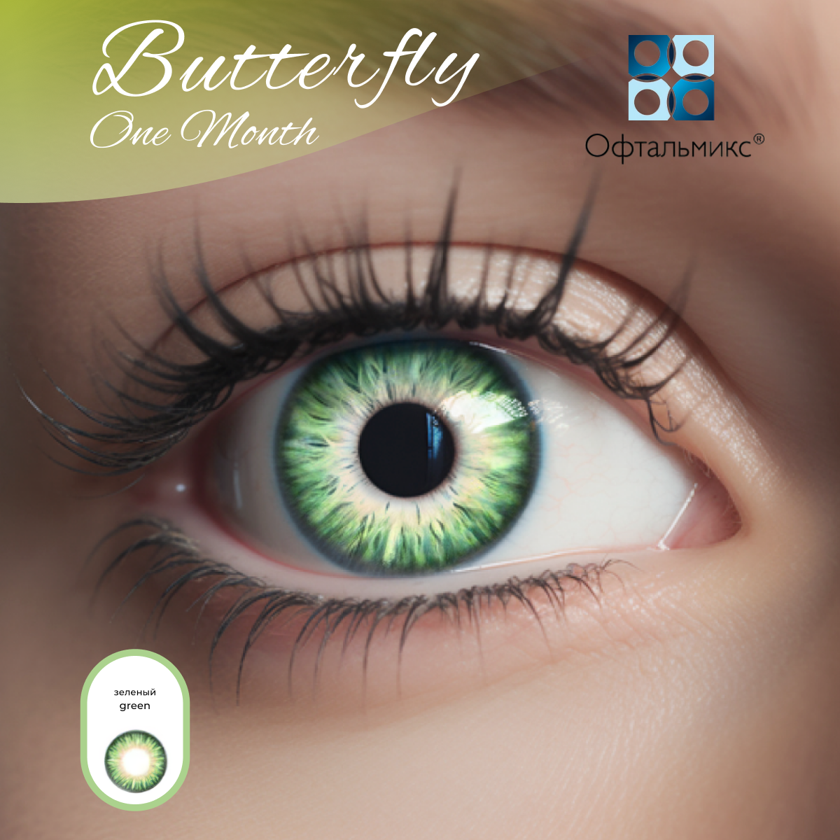 Офтальмикс Butterfly Color One Month (2 линзы) -0.00 R 8.6 Green (Зеленый)